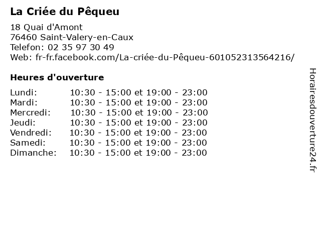 | Dimanche | 10:30-15:00 et 19:00-23:00 |