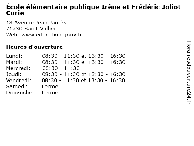 | Mardi | 08:30-11:30 et 13:30-16:30 |
