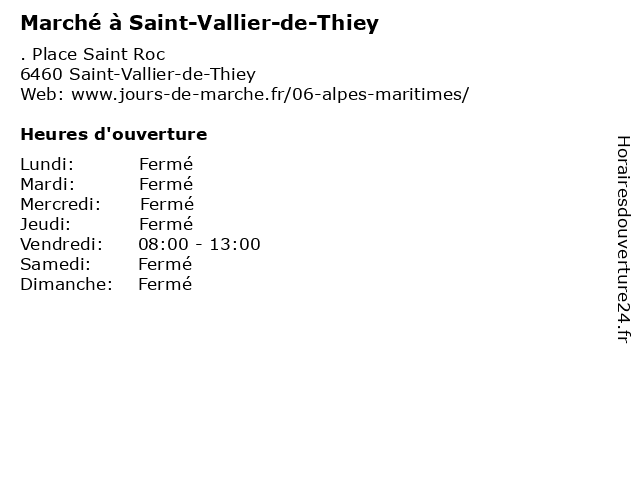 | Vendredi | 08:00-13:00 |