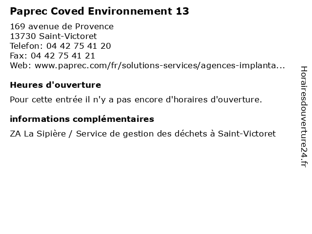| Appeler Paprec Coved Environnement 13 | |
