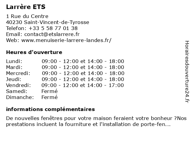 | Lundi | 09:00-12:00 et 14:00-18:00 |