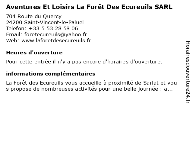 | Appeler Aventures Et Loisirs La Forêt Des Ecureuils SARL | |