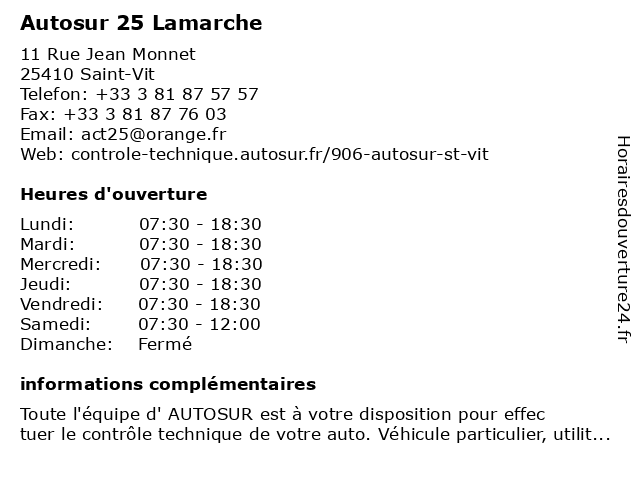 | Lundi | 07:30-18:30 |