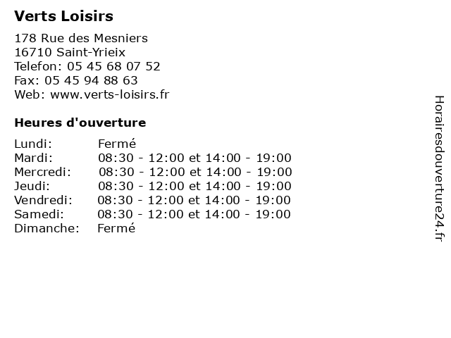 | Samedi | 08:30-12:00 et 14:00-19:00 |