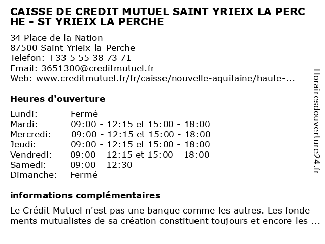 Termes de recherche pour CAISSE DE CREDIT MUTUEL SAINT YRIEIX LA PERCHE - ST YRIEIX LA PERCHE:la, de, st, saint, perche, yrieix, crédit, mutuel, caisse |