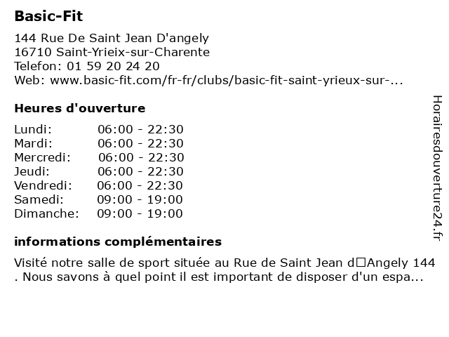 5 Basic-Fit 24/7 (Distance: 3,96 km)528 Rue De Bordeaux, 16000 Angouleme 24/7, basic, fit