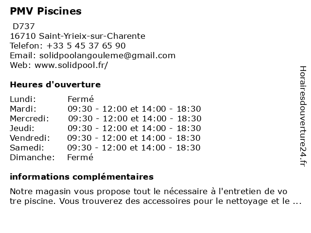Samedi | 09:30-12:00 et 14:00-18:30 |