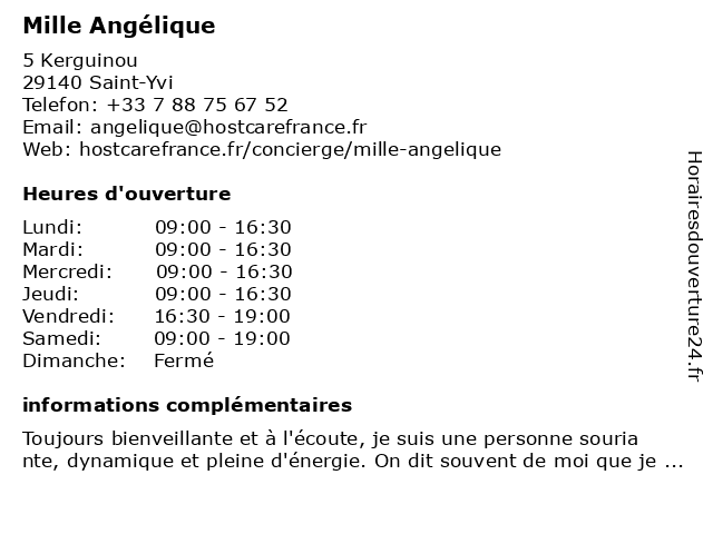 2 Mille et une Coiffures (Distance: 22,49 km) 10 route de Saint Jean Trolimon, 29120 Pont l'abbe cheveux, coiffeur, coiffures, et, mille, une 4 Mille et Une Plantes (Distance: 48,99 km) nc Dearen, 29450 Sizun et, jardinerie, mille, plantes, pépinière, une, végétaux 5 Mille et Une Coupes (Distance: 49,06 km) 1 Rue de l'Atlantique, 29160 Crozon cheveux, coiffeur, coiffure, coloration, coupe, coupes, et, lissage, mille, mèche, une 6 Angélique Soler - Psychologue (Distance: 50,41 km) 2A Place Raymond Moysan, 56100 Lorient angélique, psy, psychiatre, psychologue, sante, soins, soler |