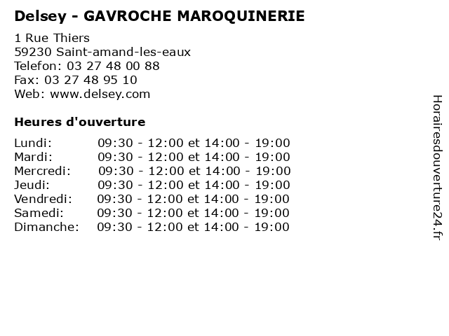 | Samedi | 09:30-12:00 et 14:00-19:00 |