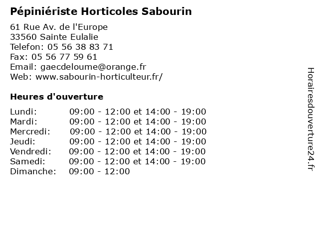 | Samedi | 09:00-12:00 et 14:00-19:00 |