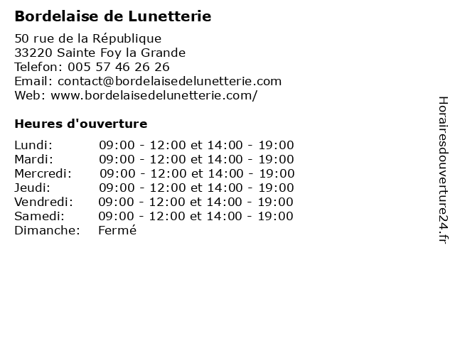| Samedi | 09:00-12:00 et 14:00-19:00 |
