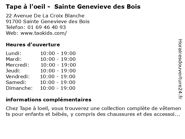 Termes de recherche pour Tape à l'oeil - Sainte Genevieve des Bois:sainte, bois, des, genevieve, salon de coiffure, mode, tape, l'oeil, magasin de vêtements pour bébés |