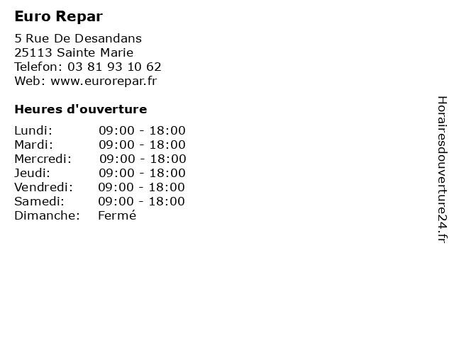 1 Aire Municipale et Euro-Relais (Borne campings-car) (Distance: 7,73 km) - Rue du Champ de Foire, 25200 Montbéliard aire, borne, campings, car, cars, eau, et, euro, municipale, relais, repos, service, stationnement, tourisme, vidange 2 Sav Beyler Euro Dépannage Chauffage SARL (Distance: 9,05 km) 15 Rue de l'Étang, 25200 Montbéliard beyler, chauffage, dépannage, euro, sarl, sav 3 Euro Pare-Brise+ (Distance: 11,97 km) 7 Rue Raoul Follereau, 25400 Audincourt accident, bris, brise+, entretien, euro, glace, pare, pare brise, réparation 5 EVS Euro Visserie Services (Distance: 14,01 km) 3 Rue Des Acacias, 90400 Dorans euro, evs, services, visserie 6 |