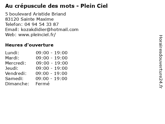 Termes de recherche pour Au crépuscule des mots - Plein Ciel:au, des, ciel, plein, mots, sainte maxime, crepuscule |