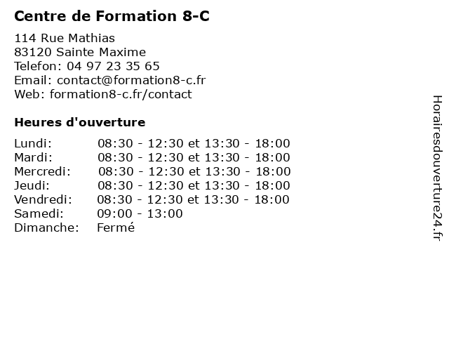 | Lundi | 08:30-12:30 et 13:30-18:00 |