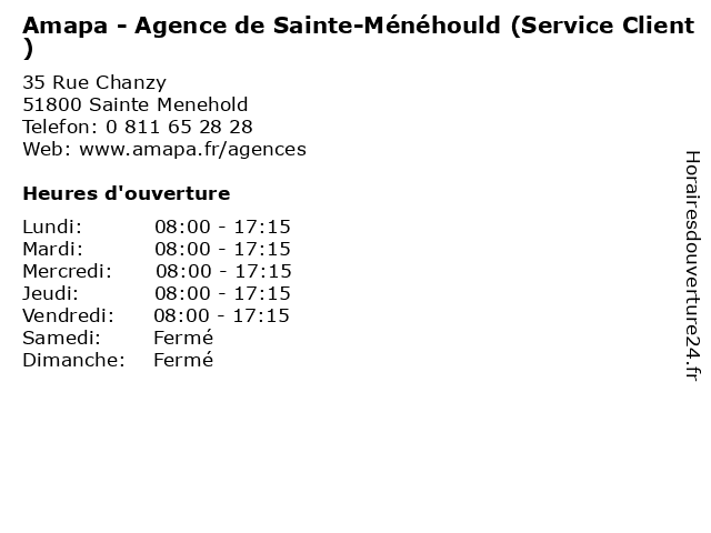 | Dimanche | Fermé |
