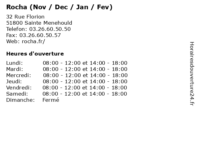 1 Rocha (Juillet / Août / Sept / Octobre) (Distance: 0,00 km) 32 Rue Florion, 51800 Sainte Menehould animaux, août, jardin, jardinage, jardinerie, juillet, octobre, rocha, sept 2 Rocha (Mars / Avril / Mai / Juin) (Distance: 0,00 km) 32 Rue Florion, 51800 Sainte Menehould animaux, april, avril, jardin, jardinage, jardinerie, juin, june, mai, march, mars, may, rocha 3 Rocha SA (Agricole) (Distance: 0,89 km) 8 route de Châlons, 51800 Sainte-Menehould accessoires, agricole, jardin, jardinerie, rocha, sa, viticole, équipement 4 Office de Tourisme - Clermont-en-Argonne(Oct,Nov,Dec,Jan) (Distance: 13,11 km) 6 Place de la République, 55120 Clermont-en-Argonne argonne, bureaux, clermont, de, dec, en, jan, nov, oct, office, services, tourisme 5 Office de Tourisme - Clermont-en-Argonne(Fev a Juin) (Distance: 13,11 km) 6 Place de la République, 55120 Clermont-en-Argonne argonne, bureaux, clermont, de, en, fev, juin, office, services, tourisme 6 Rocha (March / April / May / June) (Distance: 37,64 km) . Route de Reims, 08400 Vouziers animaux, april, jardin, jardinage, jardinerie, june, march, may, rocha |