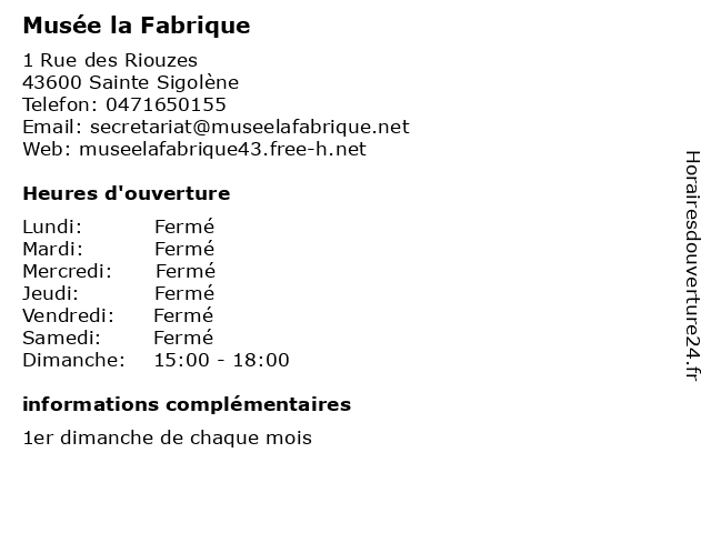 | Lundi | Fermé |