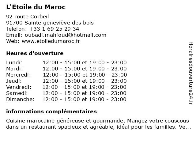 Mercredi | 12:00-15:00 et 19:00-23:00 |