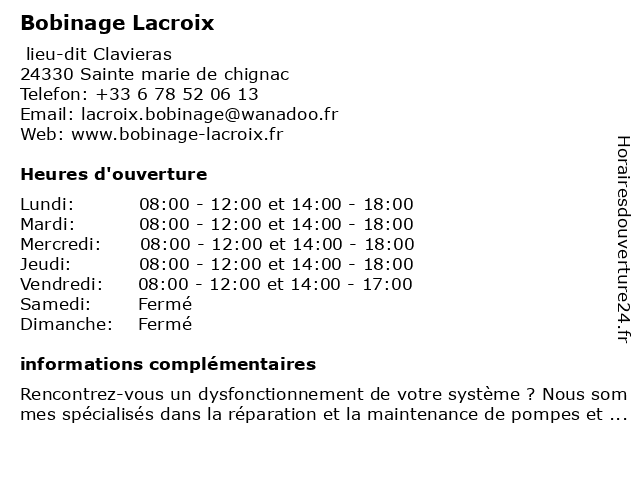 | Lundi | 08:00-12:00 et 14:00-18:00 |