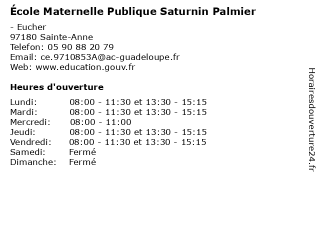 | Mardi | 08:00-11:30 et 13:30-15:15 |
