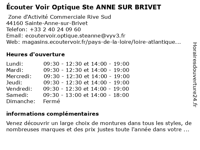 | Mercredi | 09:30-12:30 et 14:00-19:00 |