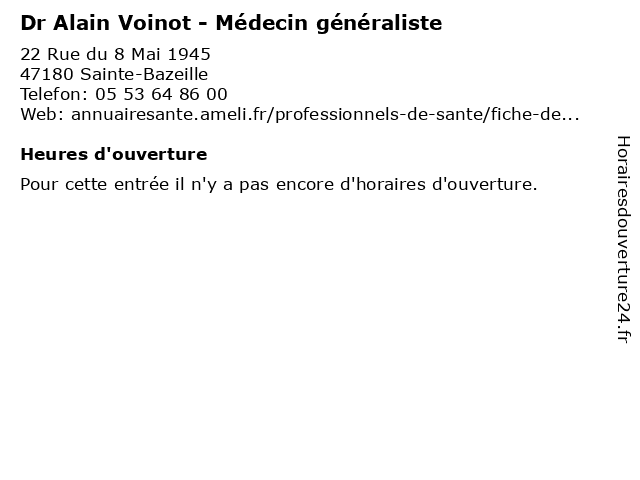 | Appeler Dr Alain Voinot - Médecin généraliste | |