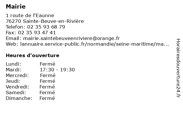 2 Mairie (Distance: 7,54 km) - Rue de la Mairie, 76390 Landes-Vieilles-et-Neuves administration, mairie, public, service 3 Mairie (Distance: 7,83 km) 2 Place de la Mairie, 76270 Neuville-Ferrières administration, mairie, public, service 4 Mairie (Distance: 8,22 km) Impasse Du Bourg, 76270 St Saire commune, mairie, restaurants, saint, saire 5 Mairie (Distance: 8,27 km) 24 Rue des Cerisiers, 76390 Ronchois administration, mairie, public, service 6 Mairie (Distance: 9,59 km) 30 Rue de l'Église, 76660 Smermesnil administration, mairie, public, service |