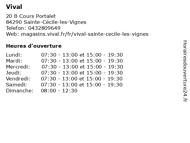 1 Vival (Distance: 12,52 km) 23 Avenue de Provence,, 84420 Piolenc bread, deli, fish shop, gas bottles, photocopy, removing packages, vival, wine cellar 2 Vival (Distance: 13,52 km) 35 Rue Saint-Martin, 84100 Orange alimentation, distributeur alimentaire, supermarché, supérette, vival, épicerie 3 Vival (Distance: 13,61 km) 5 Cours Pourtoules,, 84100 Orange bread, deli, fish shop, gas bottles, photocopy, removing packages, vival, wine cellar 4 Vival (Distance: 13,90 km) 154 Boulevard Léopold Fauritte, 84430 Mondragon alimentation, distributeur alimentaire, supermarché, supérette, vival, épicerie 5 Vival (Distance: 14,45 km) 30 Avenue de la Libération,, 84150 Jonquières bread, deli, fish shop, gas bottles, photocopy, removing packages, vival, wine cellar 6 Vival (Distance: 17,47 km) , Avenue Charles de Gaulle, 84820 VISAN bread, deli, fish shop, gas bottles, photocopy, removing packages, vival, wine cellar  |
