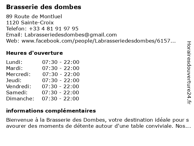 | Samedi | 07:30-22:00 |