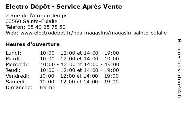 | Samedi | 10:00-12:00 et 14:00-19:00 |