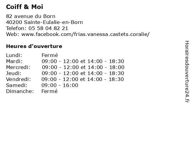 | Mardi | 09:00-12:00 et 14:00-18:30 |