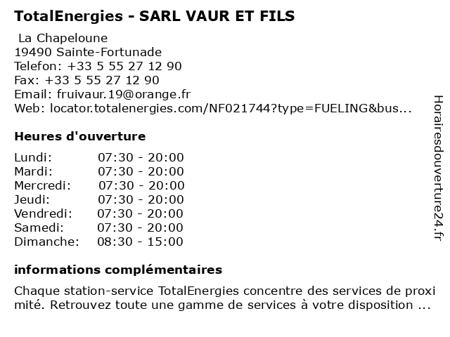 Termes de recherche pour TotalEnergies - SARL VAUR ET FILS:et, sarl, fils, total, gas station, vaur, station service, tankstelle, totalenergies |
