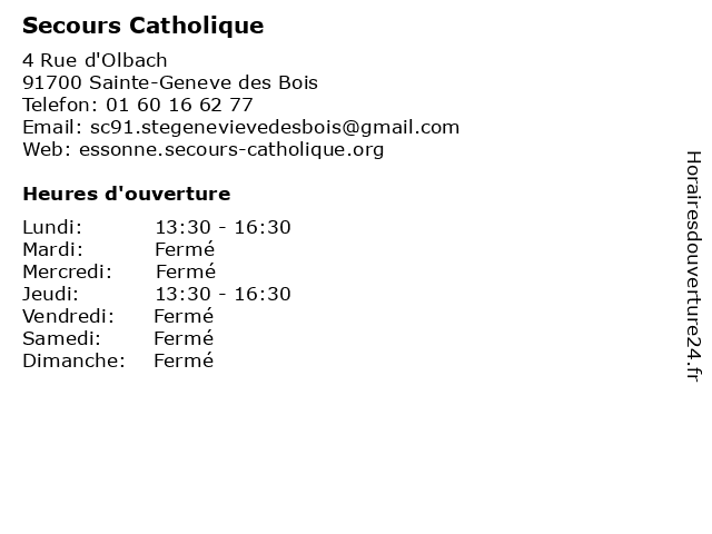 1 Secours Catholique (Distance: 1,24 km) 4 Rue Jules Vallès, 91390 Morsang-sur-Orge associatif, association, bénévolat, bénévole, catholique, secours, solidaire, solidarité 2 Secours Catholique (Distance: 2,01 km) 21 bis Rue Saint-Saens, 91240 Saint-Michel sur Orge associatif, association, bénévolat, bénévole, catholique, secours, solidaire, solidarité 3 Secours Catholique (Distance: 3,88 km) 26 Rue Maurice Sabatier, 91170 Viry-Chatillon accueil, association, catholique, organisation, secours 4 Secours Catholique (Distance: 3,91 km) 22ter Rue Charles Rossignol, 91940 Savigny-sur-Orge accueil, association, catholique, organisation, secours 5 Secours Catholique (Distance: 5,93 km) 1 Rue Frédéric Joliot, 91210 Draveil accueil, association, catholique, organisation, secours 6 Secours Catholique (Distance: 6,02 km) 98 Avenue de l’Armée Leclerc, 91420 Morangis associatif, association, bénévolat, bénévole, catholique, secours, solidaire, solidarité |