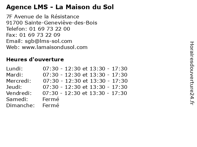 | Lundi | 07:30-12:30 et 13:30-17:30 |