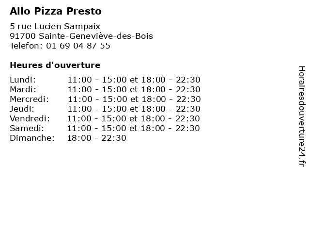 | Lundi | 11:00-15:00 et 18:00-22:30 |