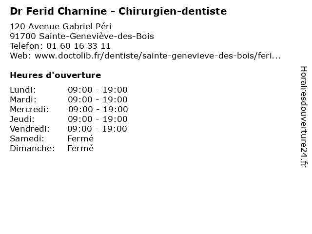 1 Dr. Bchini Ferid - Anesthésiologie Réanimation Chirurgicale (Distance: 16,79 km) 12 Rue des Noriets, 94400 Vitry-sur-Seine anesthésiologie, bchini, chirurgicale, clinique, dr., ferid, hôpital, médecins, privé, réanimation, services de santé, vitry 2 Dr Ferid Fendri - Chirurgien orthopédiste et traumatologue (Distance: 20,21 km) 9 Quai de Bercy, 94220 Charenton-le-Pont chirurgie, chirurgien, dr, et, fendri, ferid, general, orthopédiste, soins, traumatologue 3 Dr Ferid Charnine - Chirurgien-dentiste (Distance: 26,26 km) 81 Boulevard de Clichy, 75009 Paris charnine, chirurgien, consultation, dentiste, docteur, dr, ferid, med, médecin, traitement 4 Ferid Zamouri (Distance: 28,33 km) 99 Rue des Rosiers, 93400 Saint-Ouen architecture, art forain, bijoux, céramiques, ferid, mobilier, peintures & arts graphiques, zamouri 5 Lionel Jacquelin - Psychologue - secretariat (Distance: 0,00 km) 120 Avenue Gabriel Péri, 91700 Sainte-Geneviève-des-Bois jacquelin, lionel, médecin, médecine, médical, pharmaceutique, psychologue, secretariat, traitement 6 Dr Mickael Aboulker - Chirurgien-dentiste - secrétariat (Distance: 0,00 km) 120 Avenue Gabriel Péri, 91700 Sainte-Geneviève-des-Bois aboulker, chirurgien, consultation, dentiste, docteur, dr, med, mickael, médecin, médecine, secrétariat, traitement |