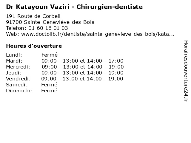1 Dr Katayoun Vahedi - Neurologue (Distance: 13,67 km) 41 Avenue Aristide Briand, 92160 Antony consultation, docteur, dr, katayoun, médecins, neurologie, neurologue, rendez, santé, sur, vahedi, vous 2 Dr Katayoun Kiahashemi - Gastro-entérologue et hépatologue (Distance: 25,01 km) 3 Place du Louvre, 75001 Paris docteur, dr, entérologue, et, gastro, generaliste, hépatologue, katayoun, kiahashemi, medical, soin 3 Manon Henriot - Chiropractrice (Distance: 0,24 km) 163 Route de Corbeil, 91700 Sainte-Geneviève-des-Bois chiropractrice, chiroprateur, chiropraticien, henriot, manon, sante, soins 4 CCAS - Centre Communal d'Action Sociale (Distance: 0,32 km) 10 Rue des Siroliers, 91700 Sainte-Geneviève-des-Bois accompagnement, aides, ccas, centre, communal, d'action, d'actions, services, sociale, sociales, soins 5 Dr Dendu Tiskaya - Chirurgien-dentiste (Distance: 1,37 km) 209 Avenue Gabriel Péri, 91700 Sainte-Geneviève-des-Bois chirurgien, dendu, dent, dentiste, docteur, dr, soins, tiskaya 6 Dr Hoang Anh Khoa - Chirurgien-dentiste (Distance: 1,92 km) 12 Rue Gambetta, 91240 Saint-Michel-sur-Orge anh, chirurgien, dentaire, dentiste, dr, hoang, implantologie, khoa, parodontologie |