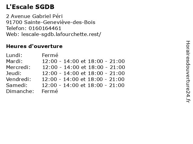 | Mercredi | 12:00-14:00 et 18:00-21:00 |