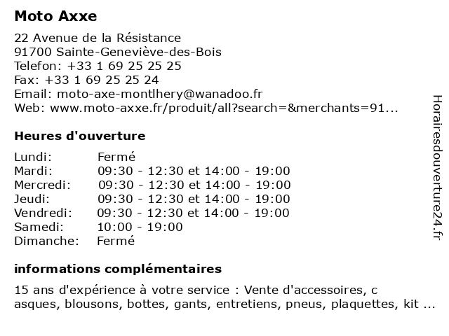 | Mardi | 09:30-12:30 et 14:00-19:00 |
