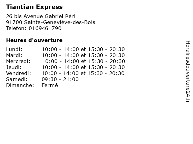 Lundi | 10:00-14:00 et 15:30-20:30 |