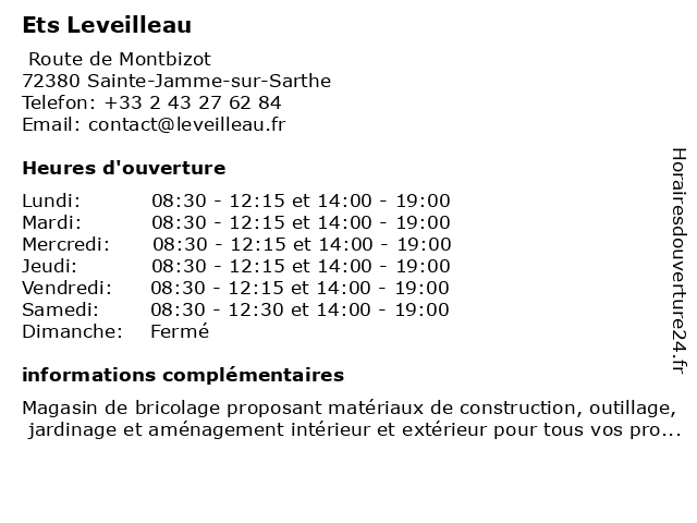 | Samedi | 08:30-12:30 et 14:00-19:00 |