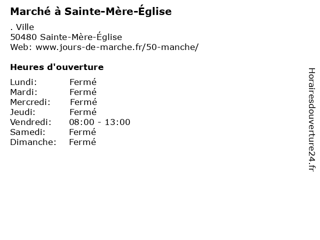 | Vendredi | 08:00-13:00 |