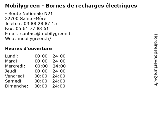 | Samedi | 00:00-24:00 |