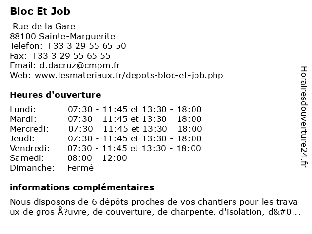 | Lundi | 07:30-11:45 et 13:30-18:00 |