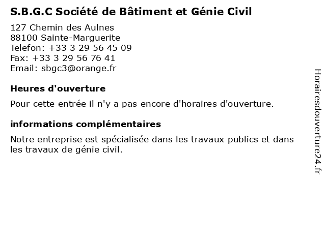 | Appeler S.B.G.C Société de Bâtiment et Génie Civil | |