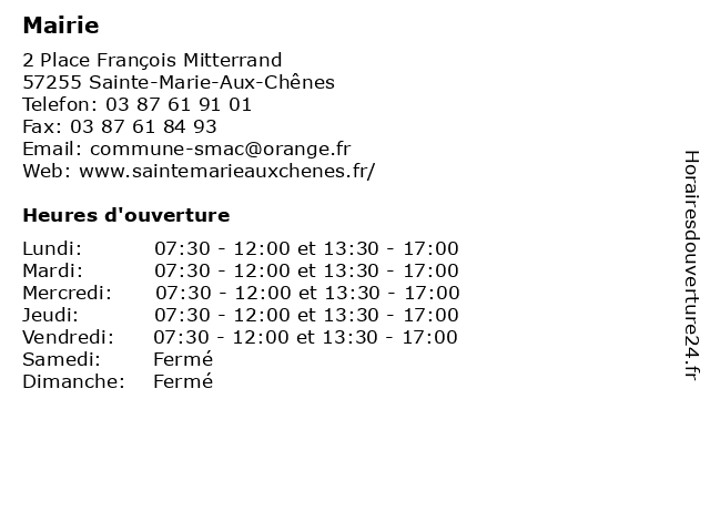 | Lundi | 07:30-12:00 et 13:30-17:00 |