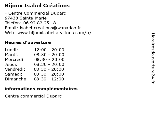 | Samedi | 08:30-20:00 |
