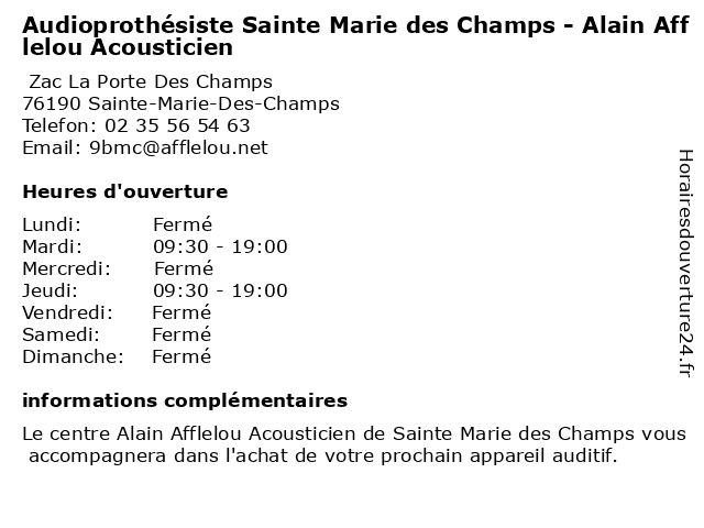 Termes de recherche pour Audioprothésiste Sainte Marie des Champs - Alain Afflelou Acousticien:sainte, champs, marie, des, alain, afflelou, acousticien, audioprothésiste, audiologie, clinique médicale |