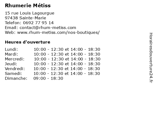 | Samedi | 10:00-12:30 et 14:00-18:30 |